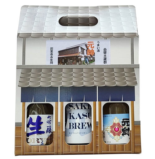 大吟醸の酒粕を使ったクラフトビール、大吟醸の生酒と純米吟醸の生貯蔵酒を味わえます。冷やして飲むのにぴったりな3点セットです。